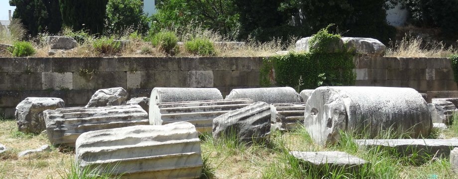 Überall verteilt liegen Säulen, Fresken, steinernde Girlanden und Statuen verteilt und von den Mauern aus hat man traumhafte Aussichten zu allen Seiten. Das türkische Festland scheint zum Greifen nah, ist allerdings auch nur 5km entfernt.