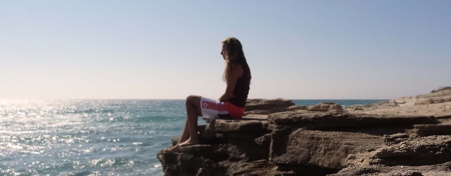 DSC00997aAm Strand angekommen entdeckte ich schon von oben eine kleine Bucht zu der man über Felsen hinabklettern musste. Dort gab es nichts mehr als 2 Liegestühle und einen Schirm – perfekt also. Damit war mein Platz für die kommenden Stunden gefunden. Ich machte eigenlich nichts anderes als mich zu sonnen, viel zu schlafen und im Meer zu plantschen. Ach ja und etwas gelesen und Griechisch gelernt hab ich auch noch.