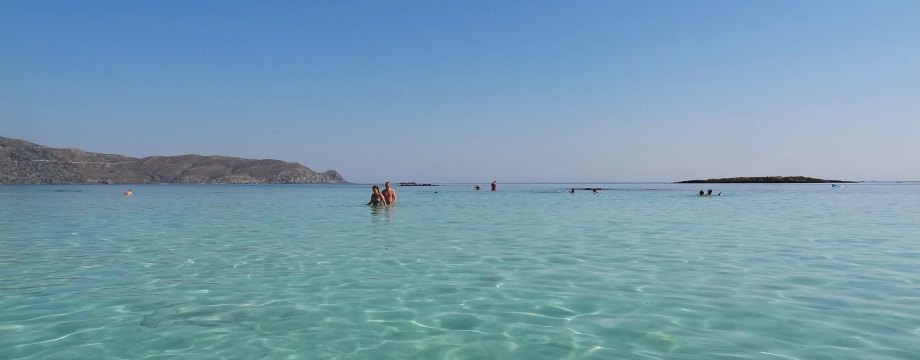 DSC08303aUnd dann war endlich Dienstag und früh am Morgen starteten wir unseren Ausflug nach Elafonissi, der Südsee auf Kreta. Die Fahrt war mit knapp 4 Stunden  angesetzt, umso besser, dass wir einen Zwischenstopp am Kournas See eingelegt haben. Das war dieser größte Süßwassersee Kretas an dem ich am Anfang der Saison schon war. Die Jungs kühlten sich im Wasser ab, wir Mädels mit einem Eis. Und weiter ging es. Gegen Mittag erreichten wir endlich unser Ziel, und nachdem sich die Jungs am Imbiss gestärkt hatten konnten wir endlich den Strand und das glasklare Wasser genießen. Das Wasser ist so flach und der Sand so weiß, dass alles in verschiedenen Türkistönen leuchtet und die Temperaturen einer Badewanne gleichen. natürlich kamen wir nicht um unzählige Fotos herum.