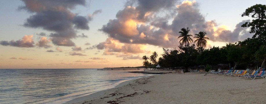 Als erstes wurden uns gleich mal die wichtigsten Worte in Kuba beigebracht: „complicado“ und „resolver“. Die besonderen Umstände machen das Leben dort nicht gerade leicht und die Antwort auf viele Fragen ist dann einfach „Uhh das ist complicado“. Aber die Kubaner sind unglaublich erfinderisch und können fast jedes Problem lösen, quasi „resolveren“. Und tatsächlich sind uns diese beiden Begriffe beinahe täglich begegnet, wurden irgendwann auch zu unserer Standardantwort auf alles, was sich nicht so einfach wie gedacht lösen ließ. 🙂 Auch wenn es erst später Nachmittag war, hatte die Sonne sich bereits verabschiedet. Für einen kurzen Moment konnten wir noch den roten Himmel bestaunen, bevor es schließlich stockdunkel wurde. Und da kamen gleich die nächsten Erkenntnisse. Die Straßen sind nicht wirklich die Besten und haben immer wieder kleine Überraschungen wie Schlaglöcher parat, Beleuchtung gibt es natürlich auch nicht. Und dazu kommt, dass wirklich alles, was sich fortbewegt, auf der Straße zu finden ist. Unbeleuchtete Pferdekutschen oder Fahrradtaxis, Menschen, die auf der Straße spazieren oder Tiere, die auch keine Eile haben.. Rolando aber fuhr ganz entspannt und setzte uns schließlich in Playa Guardalavaca ab.