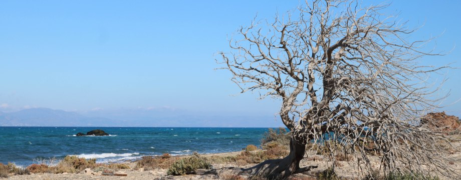 Screenshot_20191026-184634~2Los ging es mit der kleinen Insel Chrissi im Süden von Kreta vor Ierapetra. Als „Karibik von Kreta“ bekannt, zieht es jeden Sommer unzählige Touristen dorthin um das türkise Wasser und die langen, hellen Strände zu genießen. Doch Chrissi hat viel mehr als Strand zu bieten und so wollte ich schon immer mal die Insel umrunden und auch die Landschaft abseits vom Strand kennen lernen. Die Insel Chrissi („die Goldene“) liegt ca. 15 km südlich von Kreta ist und gerade einmal 5 km² groß. Sie ist zum Großteil mit Sand bedeckt, das Grundgestein jedoch bildet erkaltetes Lavagestein, welches vor Millionen von Jahren durch einen unterseeischen Vulkan ausgespuckt wurde. Die höchste Erhebung ist 31m hoch und offiziell leben hier gerade einmal 2 Menschen. Die gesamte Insel und vor allem die Vegetation unterstehen dem Naturschutzprojekt „Natura2000“, denn die Zedern hier sind zum Teil mehrere hundert Jahre alt. Aber nun zur Wanderung..