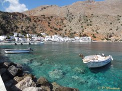 Ohne mich auch nur ein einziges Mal zu verfahren!!! (und das wiedermal ohne Straßenkarte sondern nur dank der ausgeschilderten Orte) erreichte ich gegen Mittag Chora SfakionDSC05112 an der Südküste und fand ein kleines, beschauliches Örtchen vor, indem alle Häuser weiß gekalkt und die kleine Hafenpromenade ansprechend gestaltet war. Nach einem kleinen Rundgang kaufte ich mir das Ticket für die Fähre und wenig später ging es auch schon los.